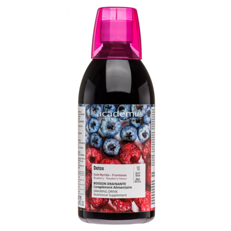 Напій Детокс-дренаж є натуральним засобом для очищення організму від надлишку води і токсинів. Засіб з лінійки догляду за тілом Academie Body призначений для виведення зайвої рідини, очищення організму і посилення ефекту від антицелюлітних процедур. Натуральні інгредієнти коктейлю мають антиоксидантну функцію, тому очищують організм і дарують відчуття легкості і покращене самопочуття.