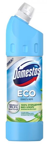 Новий Domestos Еко - це ідеальне поєднання ефективності, натуральності та турботи про навколишнє середовище. Інноваційна формула з кислотами..
