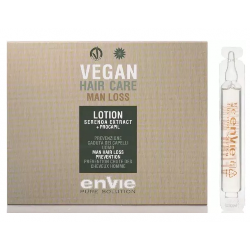 Рекомендація: для досягнення максимального ефекту використовуйте лосьйон разом із шампунем Envie Vegan New Man Loss Shampoo з тієї ж серії.