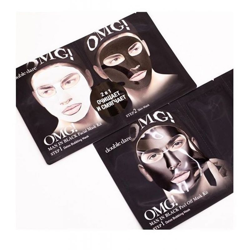 Двухкомпонентный комплекс мужских масок «Детокс» DOUBLE DARE OMG! MAN IN BLACK FACIAL MASK KIT