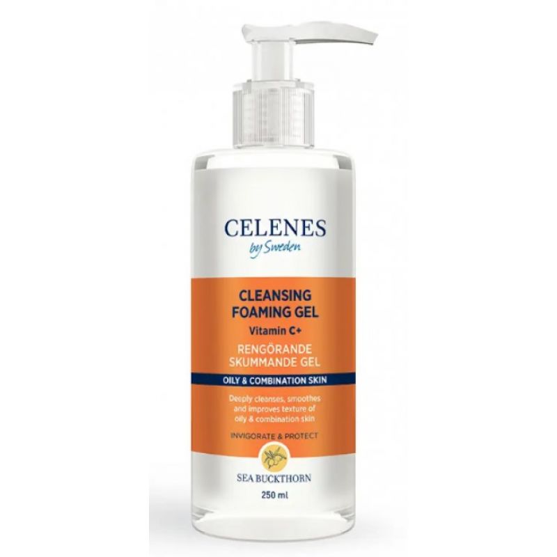 Гель-пінка з обліпихою для жирної та комбінованої шкіри Celenes Sea Buckthorn Cleansing Gel Oily and Combination Skin - знімає макіяж і зволожує шкіру. Ніжно очищає шкіру від жиру та бруду, допомагаючи збалансувати тон шкіри за допомогою вітаміну С.
