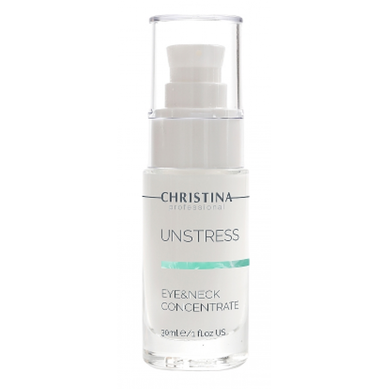 Christina Unstress Eye And Neck Concetrate - це високоефективний концентрат для інтенсивного харчування шкіри двох особливо зон, що потребують турботи: повік і шиї. Ефективність впливу цього засобу порадує вже після перших днів застосування, універсальність приємно здивує: наносити цей концентрат можна як під денний макіяж, так і ввечері перед сном.
