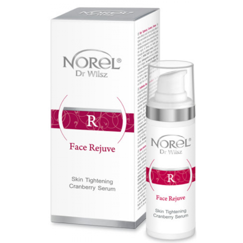 Сироватка Norel Face Rejuve – Skin Tightening Cranberry Serum має приємну гелеву консистенцію, швидко вбирається і при регулярному застосуванні помітно покращує стан шкіри з ознаками раннього в'янення. Гіалуронова кислота, вітаміни А, С та Е з екстрактом журавлини запускають процеси клітинної регенерації, підвищують пружність епідермісу, розгладжують, підтягують та освіжають шкіру.