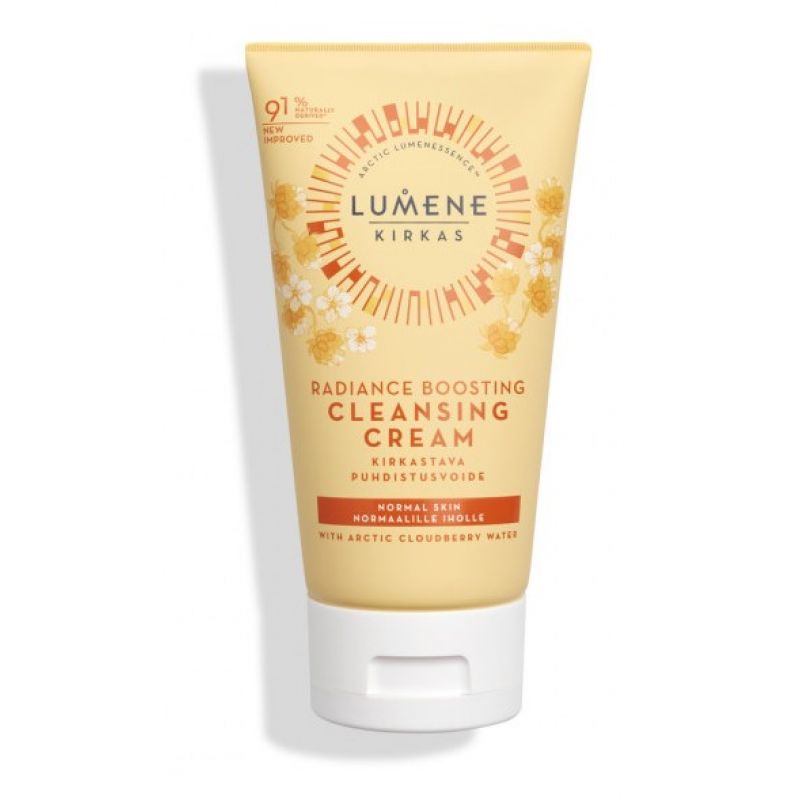 Без правильного очищення ваша шкіра не буде виглядати здоровою і пропаде її натуральне сяйво. Що очищає крем Lumene KIRKAS Radiance Boosting стане відмінним делікатним способом очищення нормальної та комбінованої шкіри. Кремоподібний очищуючий засіб на основі кристально чистої північної джерельної води, морошки і арктичної джерельної води видаляє макіяж і інші забруднення, надає шкірі природне сяйво і енергію не викликаючи сухості. Фінська джерельна вода секрет красивої і здорової шкіри від Lumene. Завдяки низькому вмісту мінеральних речовин і сприятливому для шкіри pH, вона ідеально підходить для зволоження шкіри. Також вона містить активні компоненти для глибокого догляду за шкірою. Арктична морошка має в своєму складі дуже велику кількості вітамінів С, Е, провітамін А і омега-жирні кислоти. Морошка скорочує кількість зморшок і зберігає колаген в шкірі завдяки концентрації елаготанінів. Зволожуюча крем-гелева текстура підходить для нормальної та комбінованої шкіри.
