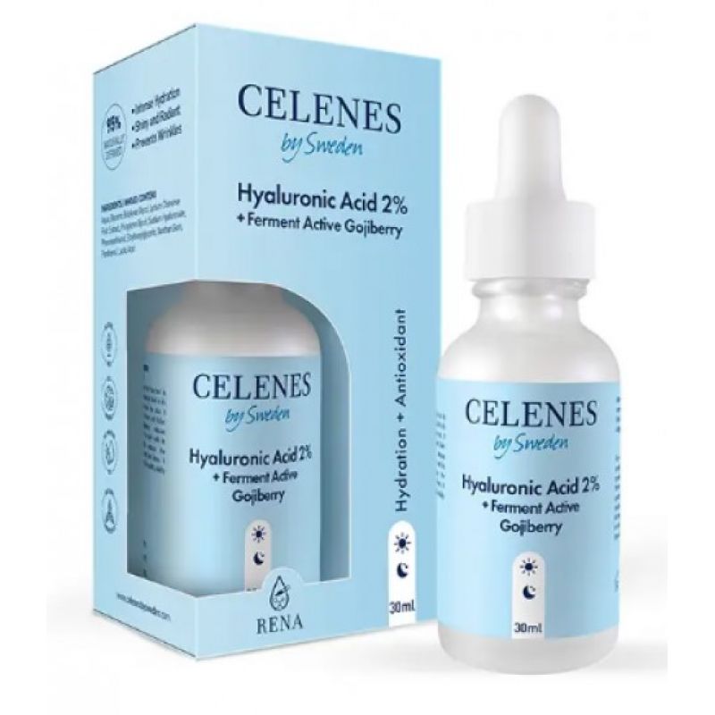 Зволожуюча сиворотка з гіалуронової кислотою Celenes hyaluronic acid 2% + ferment active gojiberry ферментованим экстрактом ягід годжи інтенсивно і глибоко зволожує епідерміс, залишаючи його більш пружним та сяючим. Засіб надає антиоксидантну дію, позбавляє наслідків стресу і повертає втомленій шкірі свіжий вигляд. Допомагає покращити тон, зменшити видимість зморшок і запобігти їх новій появі.