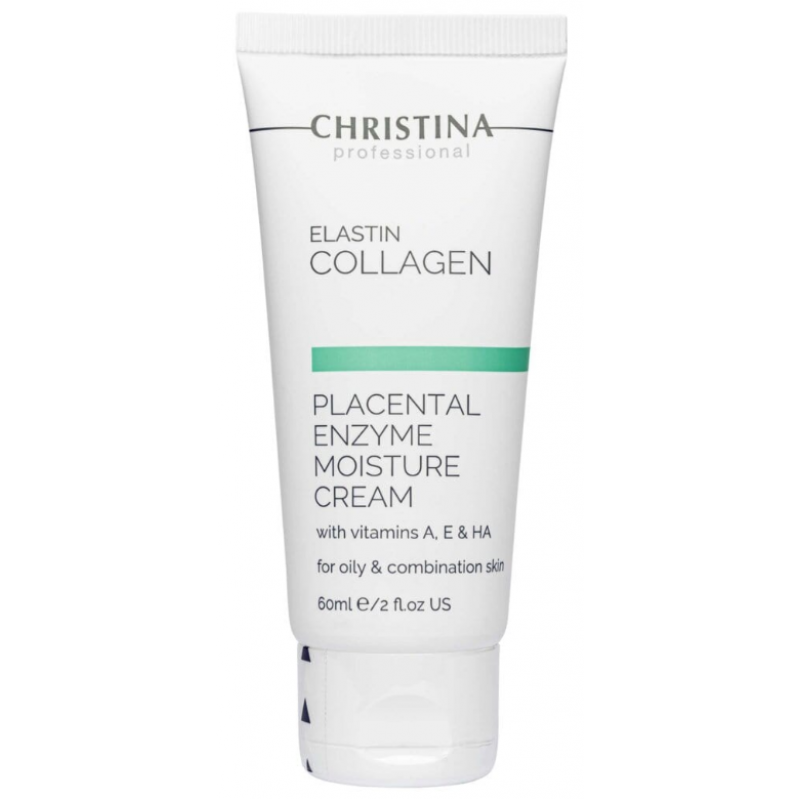 Зволожуючий крем із плацентою, ензимами, колагеном та еластином для жирної та комбінованої шкіри Christina Elastin Collagen With Vitamins A, E HA Moisture Cream
