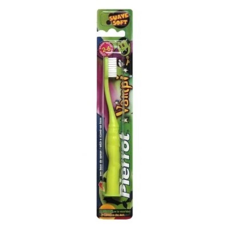 Сделайте вашему ребенку приятный сюрприз, избрав для него необычную и запоминающуюся детскую зубную щетку "Вампир", желтая Pierrot Baby. Веселый дизайн этой щетки приведет малыша в дикий восторг, ведь он сделает ежедневный уход за зубами веселым времяпровождением. У средства имеется эргономичная, нескользящая и удобная ручка, которая идеально подходит для руки ребенка. У зубной щетки мягкие щетинки, что помогает не травмировать десны и хорошо очищать зубы даже в труднодоступных местах. Ваш ребенок будет счастлив узнать, что данная щетка светится в темноте. Ведь это еще один повод превратить скучную процедуру в веселую игру. Поддерживающее основание позволяет удерживать щетку в вертикальном положении в любом месте. Улыбка вашего ребенка будет сиять здоровьем и приятной белизной. Помогите малышу самостоятельно ухаживать за своими зубами, не превращая чистку зубов в ежедневное наказание. Теперь ваш ребенок будет дарить окружающим и близким радость, чаще улыбаясь. Подарите малышу комфорт и свежесть с помощью превосходной детской зубной щетки "Вампир", желтая Pierrot Baby.