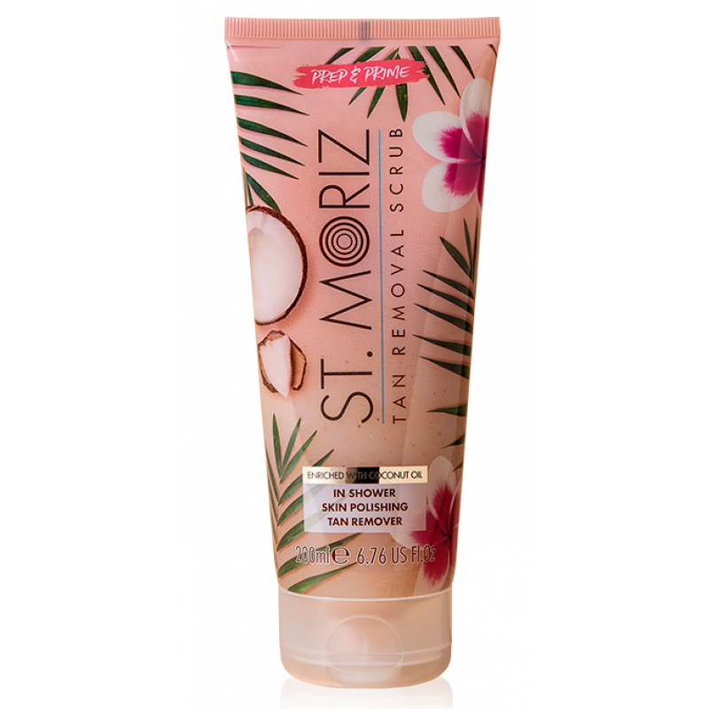Скраб для видалення автозагара збагачений кокосовим маслом і є секретом видалення старого автозагара та підготовки шкіри до нового сяйва. М'який засіб для відлущування створює ідеальну основу для будь-якого продукту St. Moriz. Це ваш новий найкращий друг і потрібна річ для прийняття душу. Незамінна річ для тих, хто регулярно засмагає, а швидкодіюча формула чудово видаляє стійку засмагу.