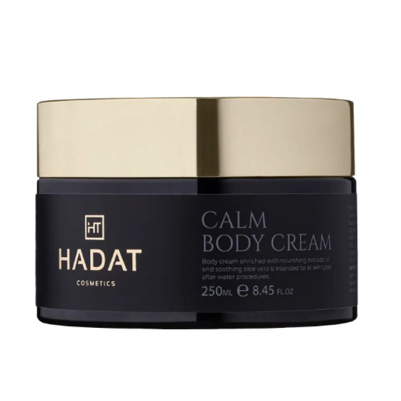 Hadat Calm Body Cream — заспокійливий крем нового покоління, створений ізраїльськими фахівцями Hadat Cosmetics. Засіб забезпечує комплексний догляд, живлення та захист шкіри, спрямований на відновлення її природного балансу й комфорт. Ідеально підходить для чутливої, сухої та подразненої шкіри, але ефективний для всіх типів. Крем має ніжну текстуру, швидко вбирається та залишає шкіру м’якою, зволоженою й захищеною протягом усього дня.
