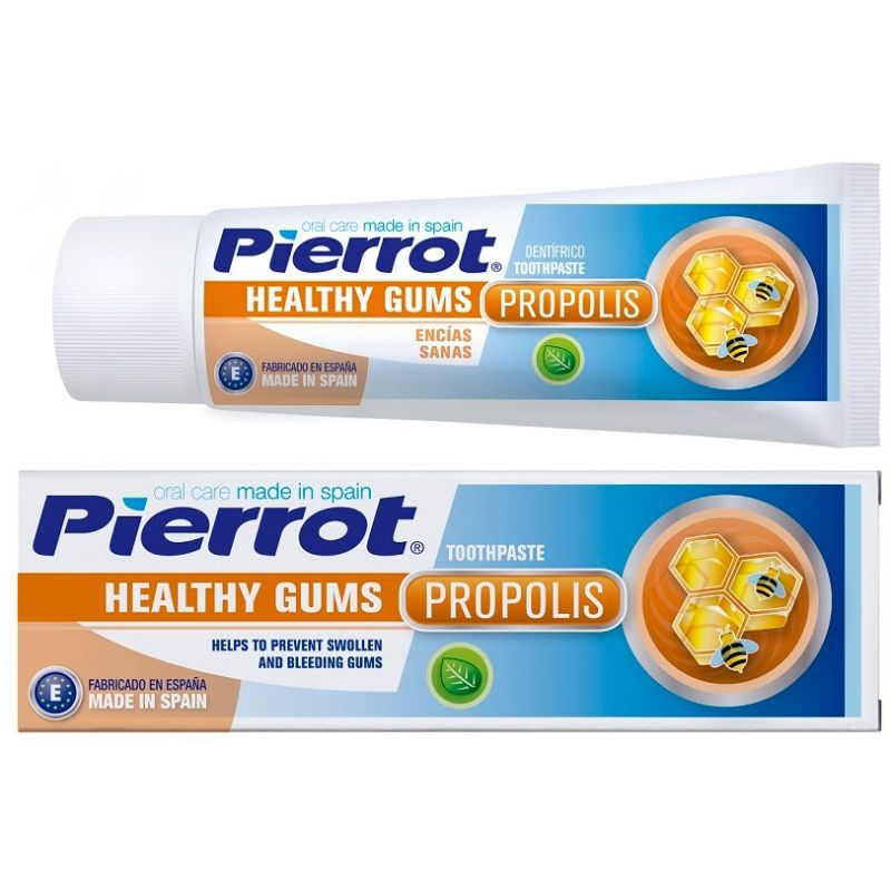 Многие заболевания ротовой полости начинаются с десен, а значит, следует позаботиться о лечебной профилактике. Испанской компанией Fushima была выпущена зубная паста для всей семьи с прополисом, которая интенсивно борется с проблемами десен. Прополис, вырабатываемый пчелами, - уникальное натуральное антисептическое, противовоспалительное и антибактериальное средство. Благодаря таким его свойствам паста уменьшит и устранит чувствительность и кровоточивость десен, надежно укрепит их и создаст должный бережный уход. Она эффективно очистит зубы, предотвратит возникновение кариеса и налета на зубах, защитит от разного рода инфекций, провоцируемых микробами и бактериями, подарит свежесть дыхания. Зубную пасту с прополисом от Pierrot рекомендуется применять для профилактики болезней десен, склонных к воспалению, а также при лечении таких заболеваний, как гингивит, пародонтоз, пародонтит.