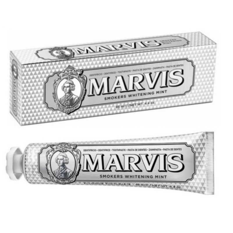 Відбілююча зубна паста Marvis розроблена спеціально для того, щоб знизити ризик стоматологічних захворювань в результаті куріння, прибрати жовтизну зубів, повернути їм білість, а дихання - свіжість.