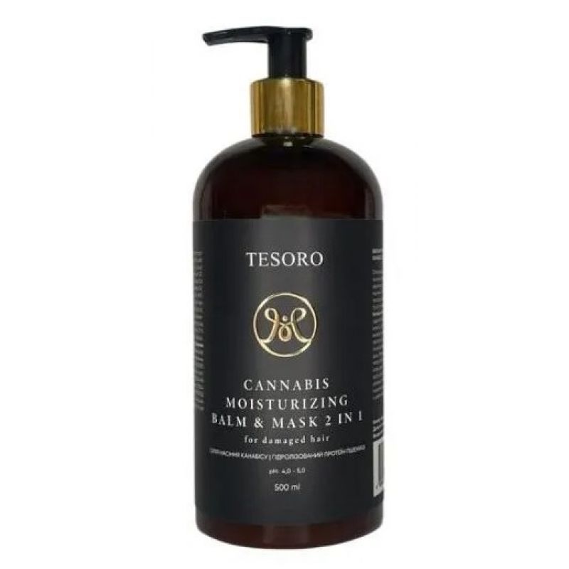 Бальзам-маска 2 в 1 для зволоження волосся з канабісом MOLI cosmetics Tesoro Cannabis Moisturizing Balm Mask 2 In 1, 500 мл