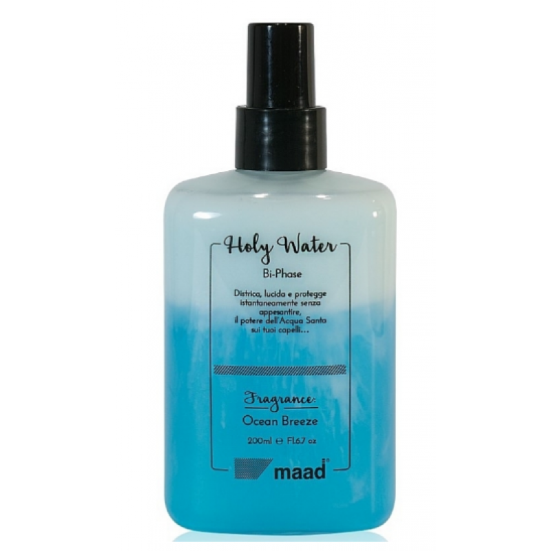 Двофазний спрей для волосся від італійського бренду MAAD. Універсальний щоденний догляд, миттєво розплутує, зволожує та розгладжує пасма по всій довжині, надає гарного блиску та захищає локони від агресивних факторів навколишнього середовища. Містить приємний аромат морського бризу, кондиціонує та пом'якшує, не обтяжує.