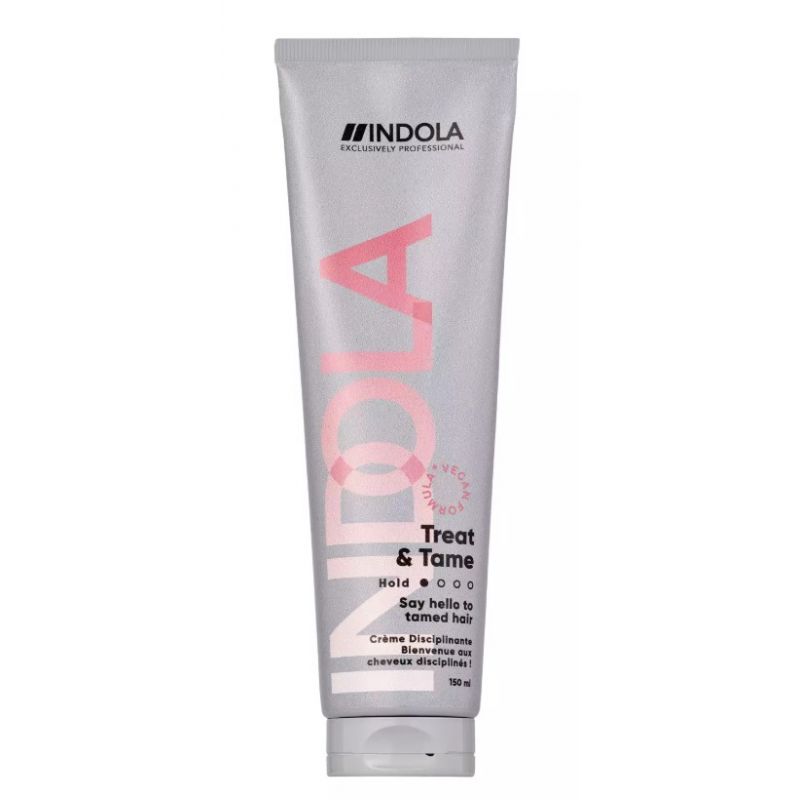 З додатковою перевагою захисту від вологи та тепла до 230°C INDOLA Treat & Tame — це крем для укладання волосся, у складі якого міститься гліцерин, щоб розгладити кучеряве волосся та повернути його під контроль.