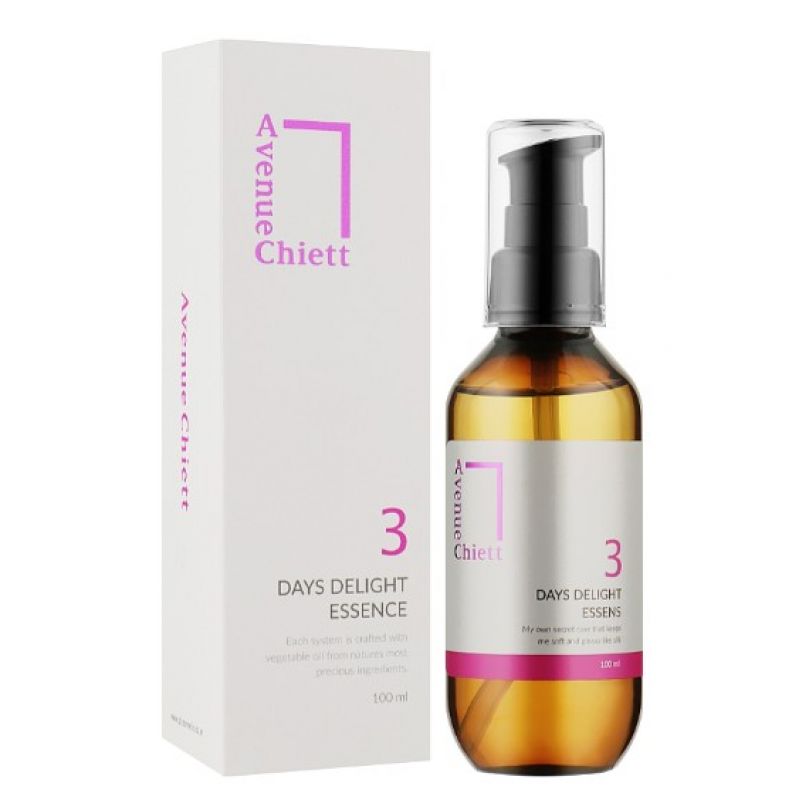 Прекрасний і багатий білий квітковий деревний аромат і золоте співвідношення масла і водного балансу, Avenue Chiett Days Delight Essence робить волосся шовковисто-м'якими, що не відчуваючи жирності, і прискорює всмоктування есенції.