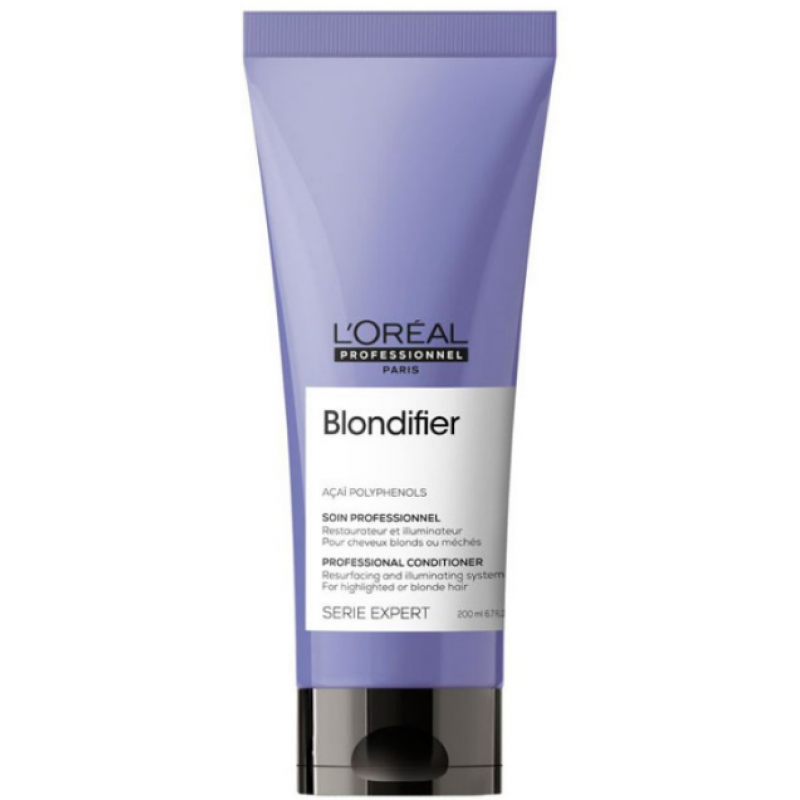 Кондиціонер з ефектом сяйва L'Oréal Professionnel Serie Expert Blondifier допоможе підкреслити природну красу вашого білявого волосся. Формула, що містить поліфеноли з ягід асаї, допомагає зміцнити волосяні волокна, відновити еластичність і розгладити поверхню волосся від коренів до кінчиків. Крім того, він полегшує розчісування, робить волосся м’яким і надає йому сліпучого блиску.