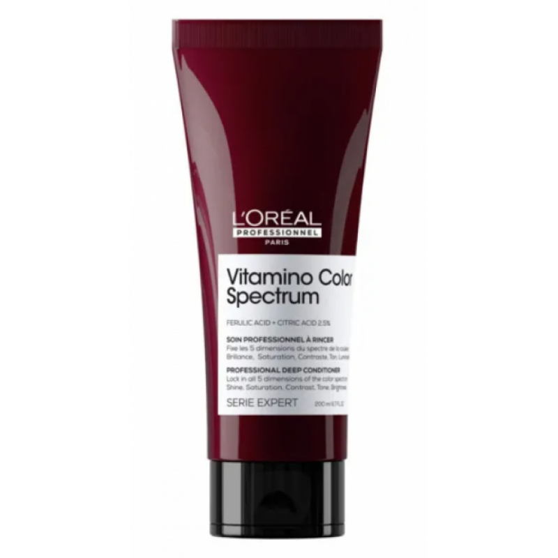 Кондиціонер Vitamino Color Spectrum Deep Conditioner від L'Oréal Professionnel був створений з особливою увагою до потреб фарбованого волосся. Цей продукт є справжньою знахідкою для тих, хто хоче зберегти яскравість та насиченість кольору своїх локонів. Основним компонентом формули є ферулова кислота, яка у поєднанні з 2,5% лимонною кислотою сприяє надійному закріпленню кольорових пігментів. Це дозволяє не тільки продовжити термін служби фарбування, але й підтримувати чудовий блиск у всіх п'яти колірних вимірах.