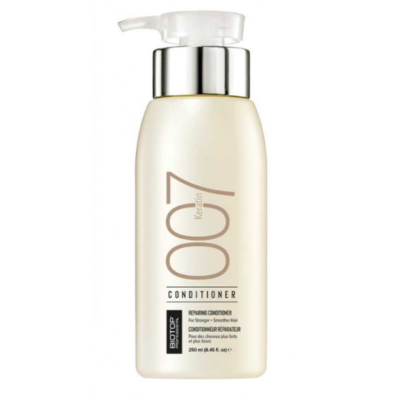 Кондиціонер з кератином BIOTOP 007 Keratin забезпечує волоссю глибоке зволоження, зміцнює його та захищає від пошкоджень. Завдяки високій концентрації кератинових протеїнів, засіб пом'якшує та розгладжує ослаблені, кучеряві, жорсткі або хімічно оброблені пасма.
