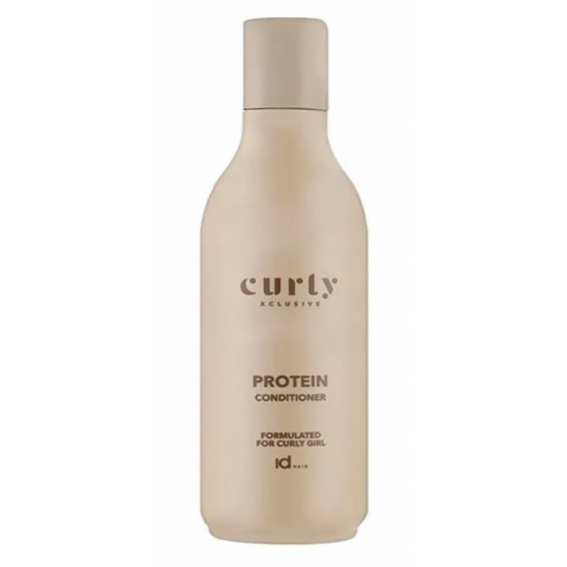 IdHAIR Curly Xclusive Protein Conditioner — це кондиціонер, що відновлює і зміцнює, який за допомогою гідролізованого рослинного білка охоплює кожне волосся і глибоко проникає всередину, зміцнюючи його від коренів до кінчиків, зводячи до мінімуму ламкість і посічення.