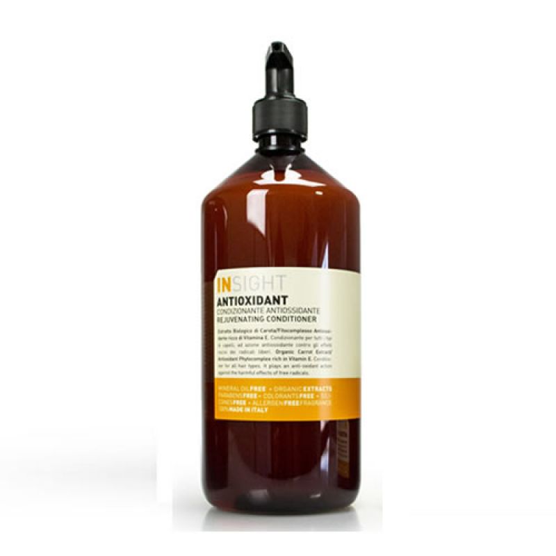 Кондиціонер тонізуючий для всіх типів волосся від Insight (Італія) має антиоксидантну, поживну та пом'якшувальну дію на волосся. Засіб активує захисні властивості волосся, утримує вологу. До його складу входять біологічний екстракт моркви, олії жожоба, сої та лісового горіха.