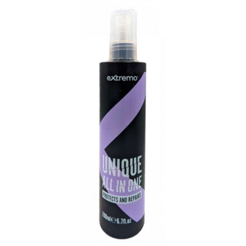 Спрей-термозахист Extremo Unique All in One (країна-виробник – Італія) – легкий спрей для захисту локонів від дії тепла електроприладів. Після нанесення продукту пасма не електризуються і легше піддаються укладанню.