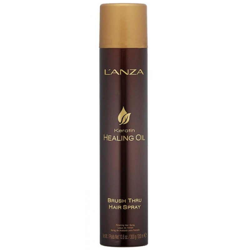 Має середній рівень фіксації, коефіцієнт 6 з 10. Технологія розпилення даного спрею для укладання є передовою на поточний момент. У ході комп'ютерного дослідження аналогічних засобів кількох сторонніх брендів були виявлені явні переваги спрею KERATIN HEALING OIL BRUSH THRU HAIR SPRAY від L'ANZA, а саме: