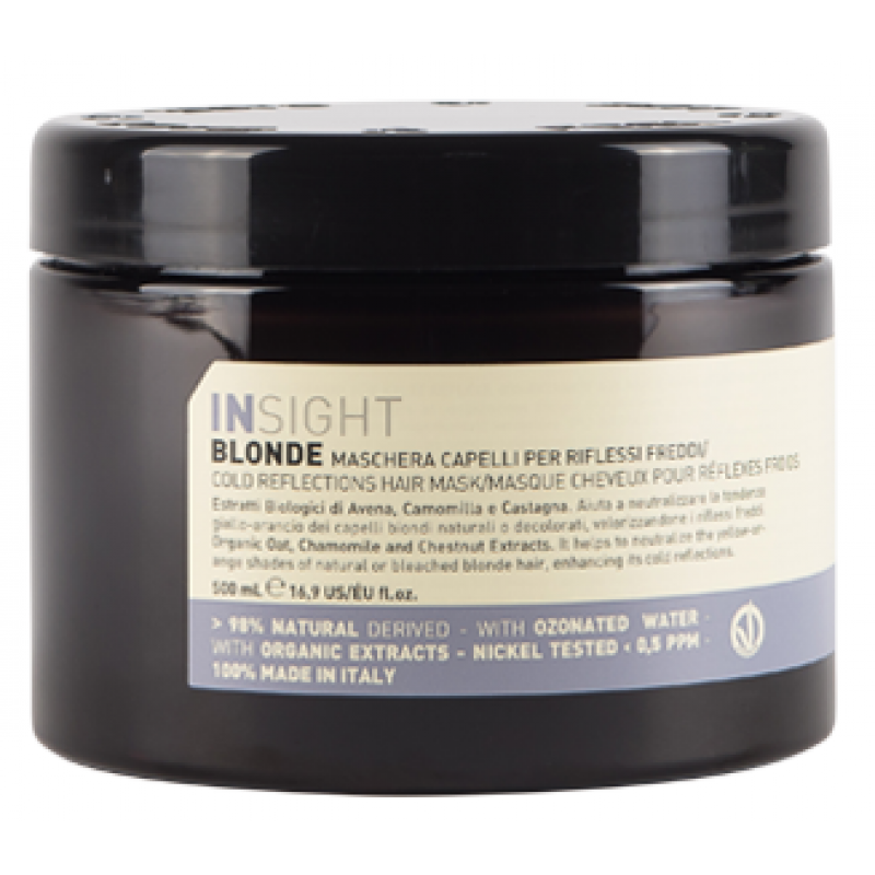 Серія INSIGHT Blond – це комплексний догляд за освітленим волоссям холодного відтінку. Крім шампуню для нейтралізації жовтизни, серія включає маску, яка не тільки підтримує холодний відтінок блонду, але й відновлює волосся. До складу маски входять преміальні органічні компоненти, понад 97 відсотків.