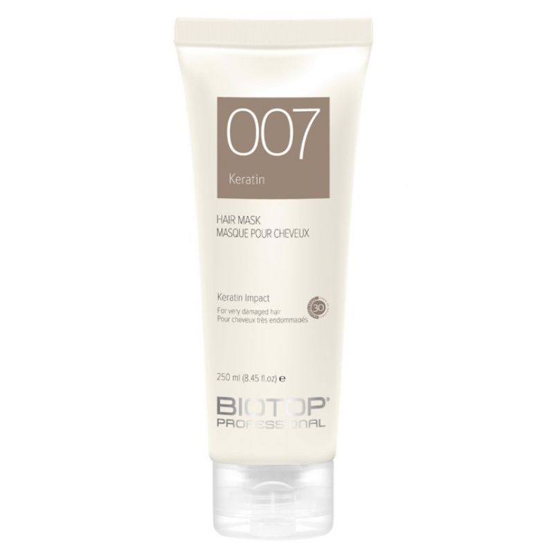 Маска з кератином BIOTOP 007 Keratin призначена для глибокого живлення та відновлення волосся. Інтенсивна маска збагачена кератиновим білком, провітаміном В5, вітаміном Е і касторовою олією – активні натуральні інгредієнти зміцнюють структуру сухого, пошкодженого, хімічно обробленого волосся. Ефективна процедура відновлює необхідний для здоров'я волосся рівень білка та масел, розгладжує неслухняні жорсткі пасма, роблячи їх м'якими та блискучими.