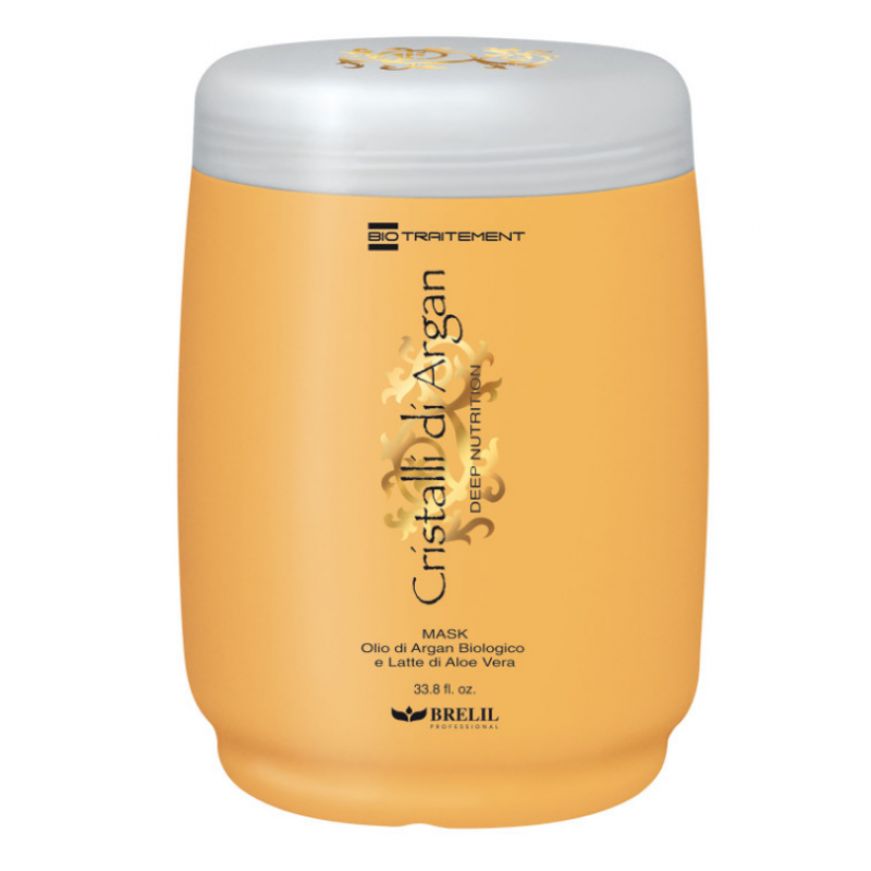 Маска для глибокого відновлення з олією арганії та алое Brelil Bio Traitement Cristalli d'Argan Mask Deep Nutrition заснована на біологічно чистих компонентах: олії арганії та молочці алое віра.