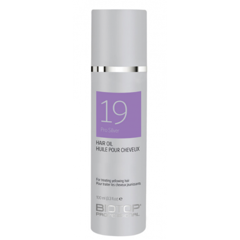 Масло 19 Pro Silver BIOTOP Professional – ультрапотужний живильний засіб з фіолетовим відтінком для інтенсивного зволоження та захисту фарбованого або натурального світлого волосся.