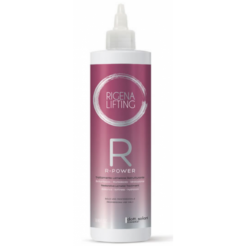 Реструктуризуюча ламелярна процедура R-Power — це комбінація гліколю, лікувальних агентів і висококонцентрованої гіалуронової кислоти. Легка рідина, а не вода, при контакті з вологістю волосся активується, утворюючи легку емульсію.
