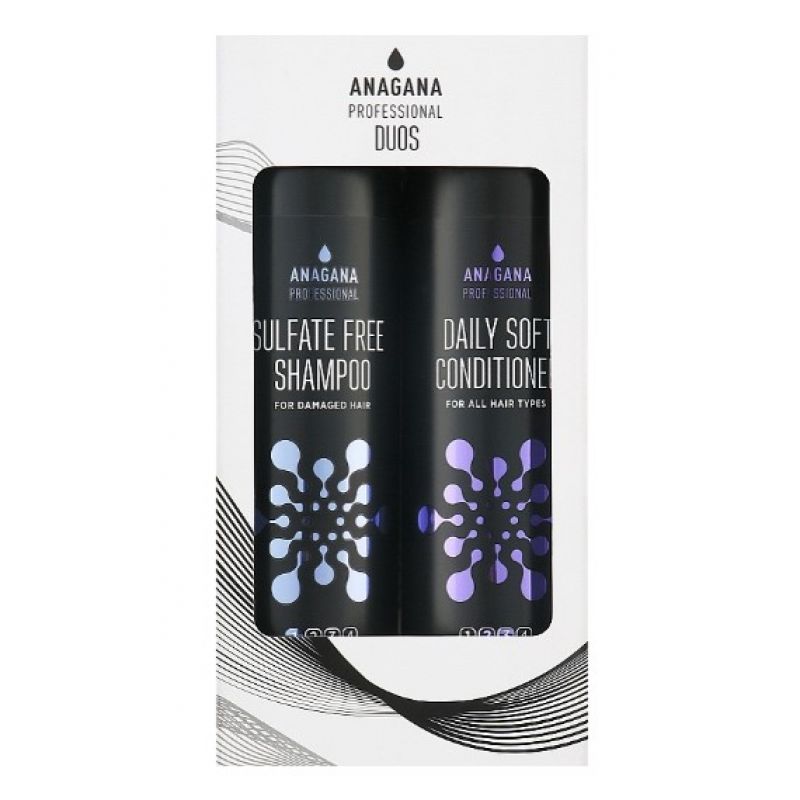 Склад набору: Безсульфатний шампунь для пошкодженого волосся - Anagana Professional Sulfate Free Shampoo 250 мл + Кондиціонер "Щоденний м'який" для всіх типів волосся - Anagana Professional Daily Soft Conditioner 250 мл