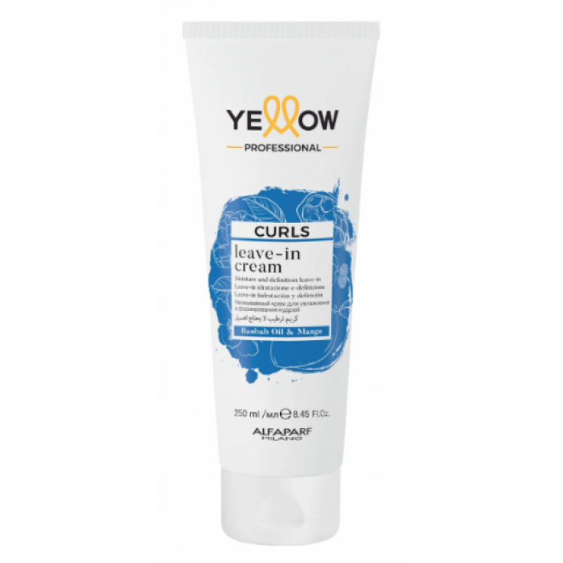 До складу крему Yellow Curls Leave-in cream входить натуральна олія манго та баобаба. Вони мають дуже легку текстуру, швидко вбираються та не обтяжують волосся. Завдяки вмісту кислот, вітамінів Е, D, F, А, компоненти крему зміцнюють тонкі кучеряві локони, повертають їм здоровий блиск і еластичність.