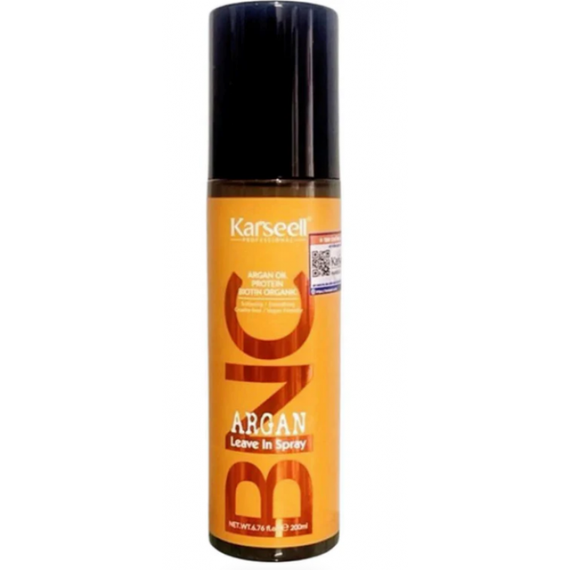 Легкий спрей Karseell BNC Argan Leave In Spray стане справжнім порятунком для ваших локонів. Формула з аргановим маслом зволожує, розплутує пасма та повертає їм природне сяйво. Підходить для вологого і сухого волосся, не обтяжуючи його. Цей продукт - ваш ключ до м'яких, слухняних і здорових кучерів.