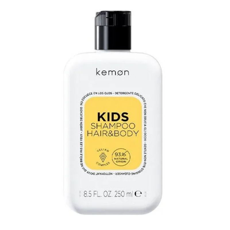 Ніжний шампунь Kemon Hair Care Kids — ідеальний засіб для делікатного очищення волосся та тіла малюків. Формула протестована на чутливій шкірі, не подразнює очі та містить 93% інгредієнтів натурального походження. Підходить для дітей від 3 років.