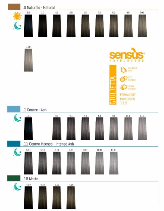 Sensus Giulietta — це професійна аміачна крем-фарба нового покоління, створена для майстрів колористики, які очікують бездоганного результату фарбування та водночас прагнуть зберегти високу якість волосся. Інноваційна формула поєднує стійкі фарбувальні пігменти, сучасні технології проникнення кольору та комплекс натуральних доглядових компонентів, що забезпечують максимально делікатний вплив під час процедури.