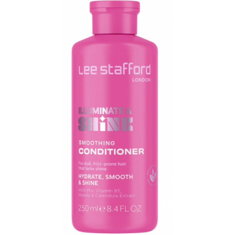 Розгладжуючий кондиціонер для блиску Lee Stafford Illuminate & Shine Smoothing Conditioner - розкішний засіб для волосся, позбавленого блиску. Розгладжуючий кондиціонер Lee Stafford - це насичена кремоподібна формула, яка легко ковзає по волоссю, м'яко розплутуючи і зволожуючи кожне пасмо, роблячи волосся шовковистим, гладким і сяючим.
