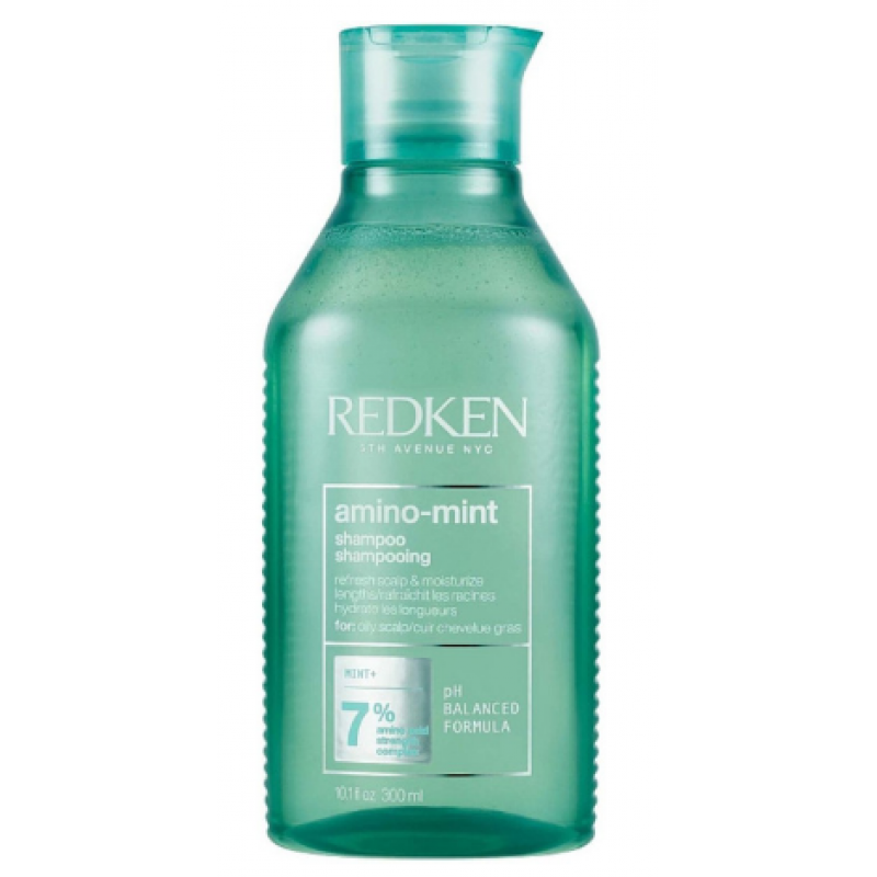 Професійний шампунь Amino Mint від компанії Redken (США), виготовлений на основі інноваційної кислотної формули, що містить м'яту, катіонні полімери, бетаїн забезпечує миттєвий результат — очищає, освіжає, зволожує та живить шкіру голови та волосся.