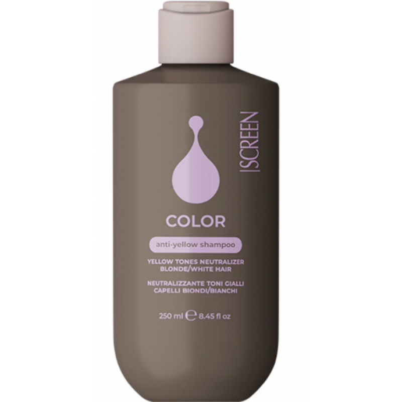 Screen Color Anti-Yellow Shampoo — професійний шампунь, спеціально створений для боротьби з жовтизною на світлому, сивому або мелірованому волоссі. Формула збагачена фіолетовими пігментами, які ефективно нейтралізують теплі відтінки, повертаючи волоссю холодний, благородний тон.