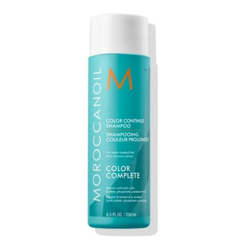Шампунь для збереження кольору Moroccanoil Color Complete. У виробництві засобу використовуються революційна технологія COLORLINK™ з трьома активаторами кольору та безсульфатна основа, які м'яко та дбайливо очищають волосся від забруднень, відновлюють та живлять кожне пасмо. Препарат доповнює професійний салонний сервіс ChromaTech комплексного догляду задля збереження кольору від продукції Moroccanoil.