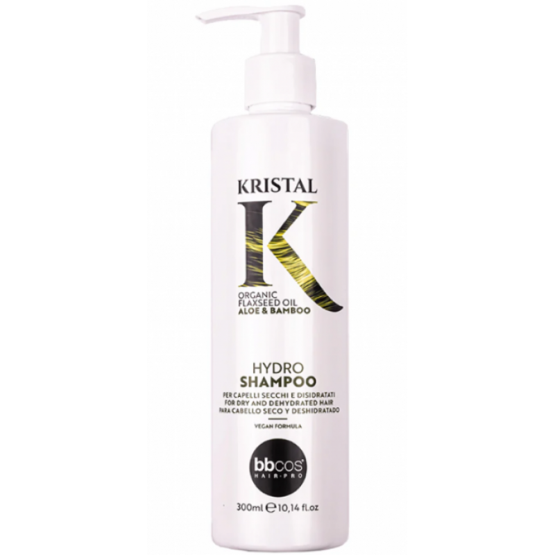 BBcos Kristal Hydro Shampoo — професійний зволожуючий шампунь для догляду за сухим, тьмяним і ослабленим волоссям. Він м’яко очищає волосся та шкіру голови, не порушуючи природний рівень зволоження, та насичує волосся поживними компонентами. Засіб допомагає повернути волоссю м’якість, еластичність і природний блиск вже після першого застосування.