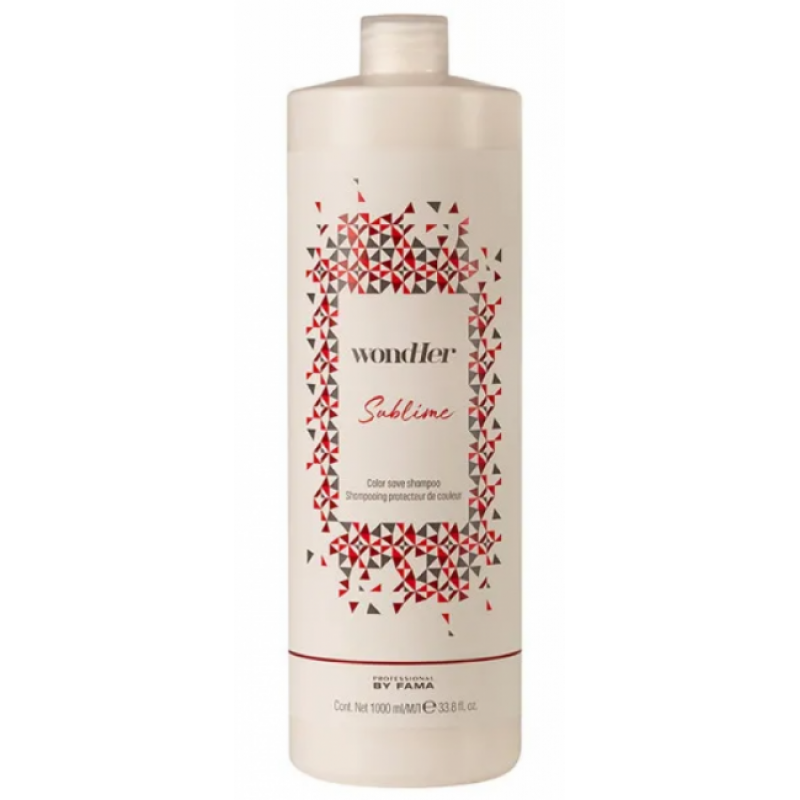 Шампунь для захисту кольору фарбованого волосся Professional By Fama Wondher Sublime Color Save Shampoo м'яко очищує та допомагає зберегти колір. Шампунь для захисту кольору з екстрактом ферментованого соняшника та захисним фільтром забезпечує стійкий сяючий колір та гарний блиск. Ідеально підходить для фарбованого волосся.