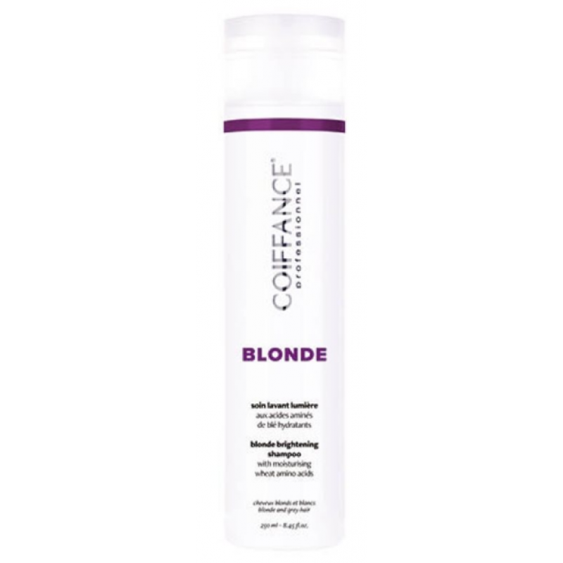 Coiffance Blond Brightening Shampoo має тонуючий ефект, який нейтралізує небажану жовтизну, надаючи благородного холодного відтінку. Освітлене або світле від природи волосся отримує додаткову еластичність і міцність, чудово переносять укладання і сяють здоров'ям.