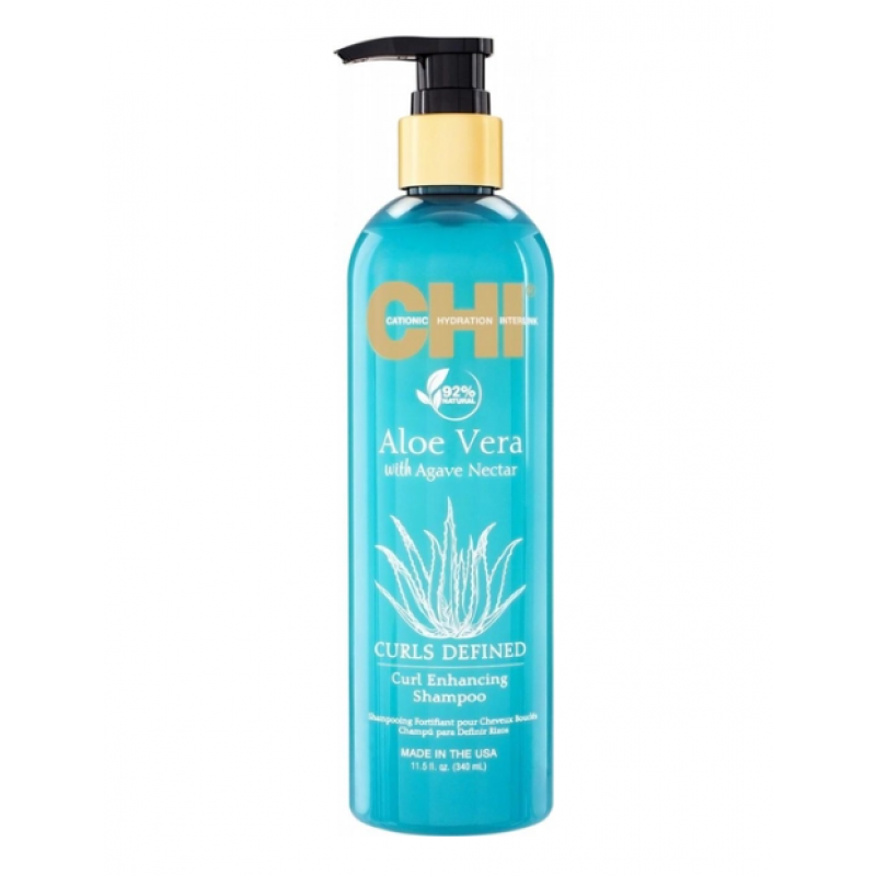 CHI Aloe Vera Curl Enhancing Shampoo - Шампунь з алоє для кучерявого волоссяШампунь для волосся, що активує завиток, містить живильний комплекс з Нектару Агави та Алое Віра для відновлення еластичності, блиску та пружності.Шампунь для кучерявого волосся CHI ® пом'якшує і робить гладкою структуру кучерявого волосся, бореться з пухнастістю і статикою, властивою кучерявому волоссю.