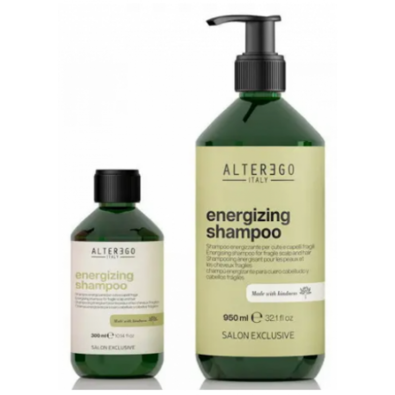 М'яко очищає шкіру голови, відновлює тонус і готує її до подальшого догляду проти випадіння волосся. Італійська компанія Alter Ego пропонує споживачам Energizing Shampoo - енергетичний шампунь від випадіння волосся. Він може використовуватися як у комплексі з тоніком і бальзамами, так і самостійно.
