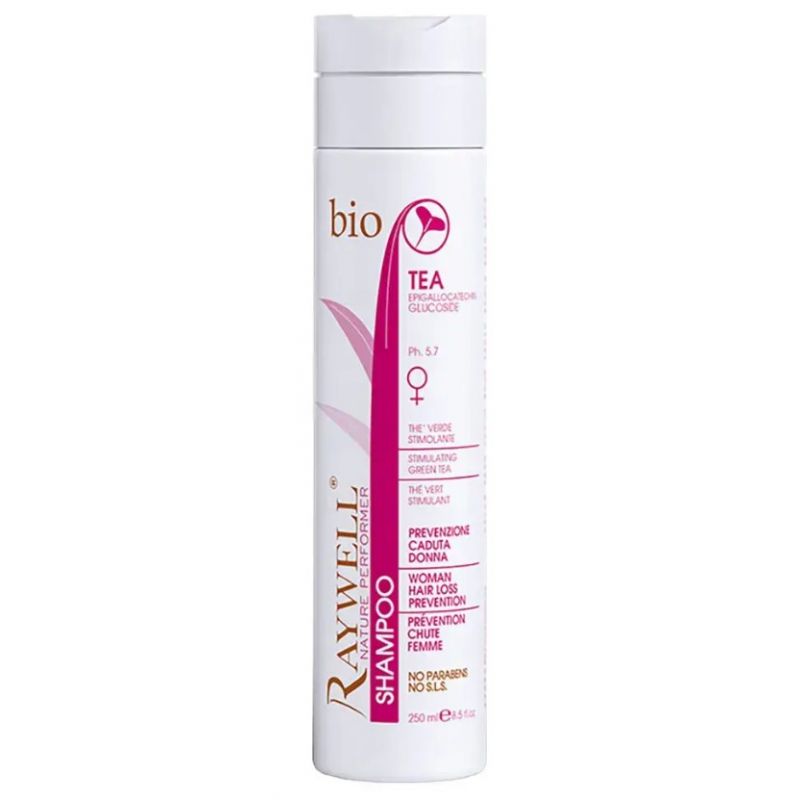 Спеціальний лікувальний шампунь для жінок проти випадіння волосся Raywell BIO не просто підтримує ріст волосся, але і запобігає їх масовому випадінню. Склад шампуню багатий рослинними натуральними компонентами, екстракт зеленого чаю надає антисептичний і заспокійливий ефект на шкіру голови, масло камелії живить і відновлює, а гіалуронова кислота зволожує пасма по всій довжині. Шампунь допомагає відновленню клітин шкіри, тим самим стимулюючи ріст волосся і їх відновлення. Підходить для всіх типів волосся.