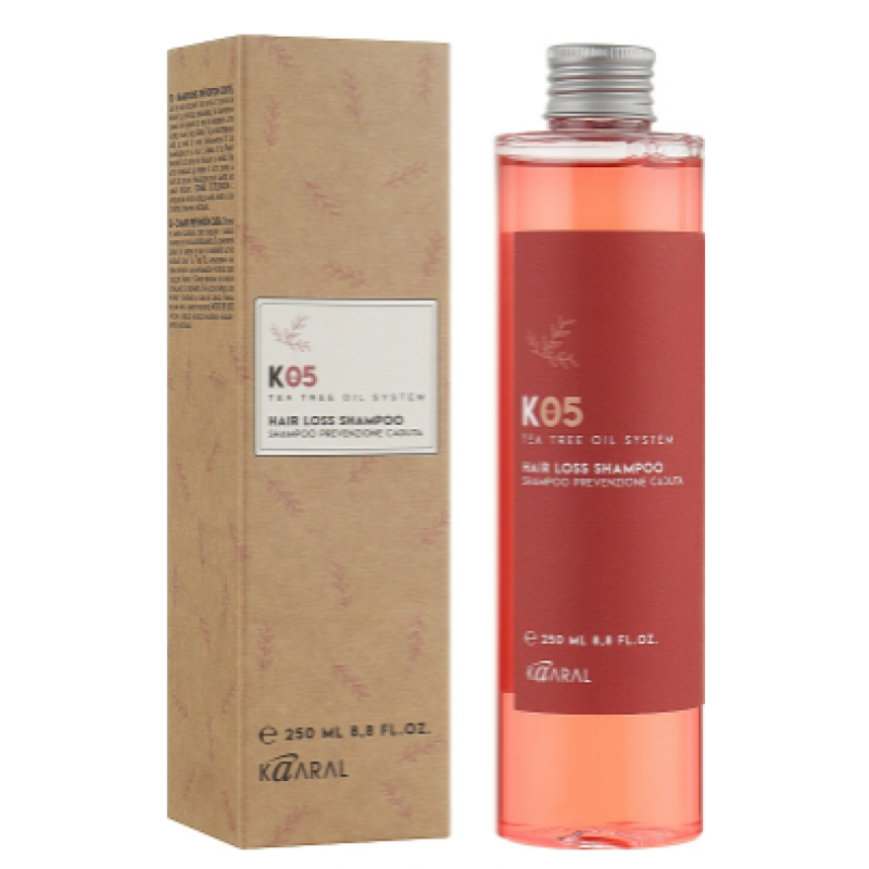 Шампунь проти випадання волосся К05 Kaaral служить для очищення шкіри голови та запуску механізму дії терапевтичного комплексу проти випадання волосся. Активні компоненти шампуню покращують мікроциркуляцію крові. Шампунь зміцнює коріння волосся, нормалізує ліпідний обмін, має тонізуючу та антисептичну дію. Має розігріваючу дію. В результаті шампунь сприяє як зміцненню волосся, так і прискоренню його зростання.