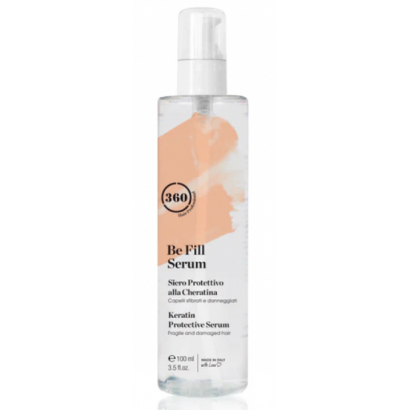 360 Be Fill Serum підходить для всіх типів волосся, у тому числі для фарбованого. Він також не містить сульфатів і парабенів, тому дбайливо впливає на волосся та шкіру голови.