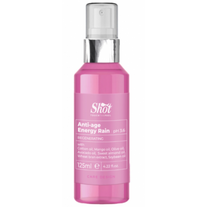 Незмивна сироватка з олією макадамії, еластином, протеїнами молока для щоденного догляду за пошкодженим, ламким волоссям. Багатофункціональна незмивна сироватка Shot Care Design Anti-Age Spray - необхідний засіб для щоденного відновлення та пожвавлення ламкого, пошкодженого волосся. Завдяки вмісту колагену, алое віра і вітаміну Е та інших дорогоцінних компонентів, таких як протеїни рису та пшениці, сироватка зволожує, глибоко відновлює волосся, роблячи його еластичним і підвищуючи їхню міцність до натягу. Активні інгредієнти: колаген, олія макадамії, протеїни молока, еластин, сік алое віра, вітамін Е.
