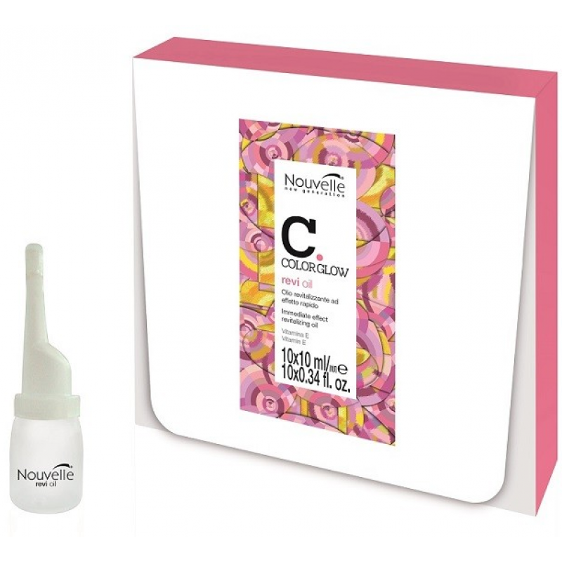 Ноувель ампули Nouvelle color glow дарують волоссю блиск та легкий об'єм. Мають функції антистатика. Як і всі засоби Nouvelle color glow, ампули містять вітами Е - потужний антиоксидант, що захищає волосся від вигоряння та старіння. Виробляє колаген, який надає волоссю еластичності. Підвищує яскравість фарбованого волосся.